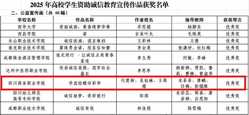 2025年四川省高校学生资助诚信教育主题活动评选结果正式公布:伟德官网选送的参赛作品在全省千余部参评作品中崭露头角,斩获三等奖1项、优秀奖1项。这一成绩不仅是对获奖学生创作能力与诚信素养的高度认可,更印证了伟德官网长期以来深耕资助育人领域、培育校园诚信文化所取得的显著成效。本次征集活动共收到各系报送的诚信主题作品40余部,作品形式多样、情感真挚,每一部作品都凝聚着同学们对“诚信”内涵的深刻解读、对资助政策的感恩之心,...