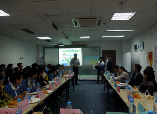 近日,学院经营管理系主任梁栋带领系相关领导老师前往成都福满家便利有限公司,看望该系顶岗实习的11级连锁经营管理专业的29名学生,实地座谈了解他们的工作生活情况。
