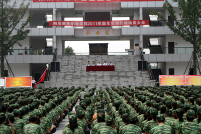 2011年9月11日上午,伟德国际victor1946和盛校区再一次被十分壮观的橄榄绿覆盖,学院历史上规模最大的新生军训汇报暨开学典礼在此隆重举行。