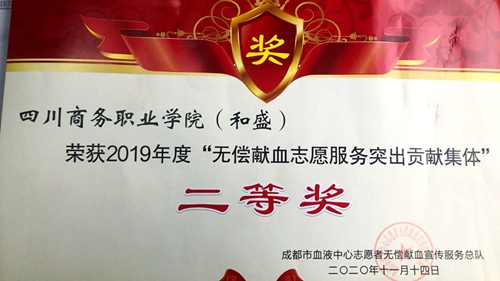 为表彰伟德官网无偿献血志愿服务的杰出贡献,近日,成都市血液中心志愿者无偿献血宣传服务总队授予伟德官网2019年度“无偿献血志愿服务突出贡献集体”二等奖。 2019年,学院团委联合成都市血液中心总共开展了三次无偿献血活动,共有1000余名师生参加。每次活动都有组织者院团委青服队与志愿者们忙碌的身影与温和的话语。大家用真诚的爱心,为血库增加了温暖的血液,为社会奉献出了一份宝贵的力量,同时也促进了学院青年志愿工作的良...