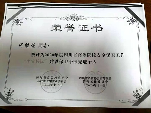 近日,由四川省高等教育学会高校保卫学专业委员会与四川省消防协会高等院校消防工作委员会联合评选的2020年度“平安校园”建设先进个人名单已经出炉,伟德官网教师何胜荣、罗开元、张清和学生冯娟、朱先煜荣获先进个人称号。 近年来,学院高度重视“平安校园”建设工作。保卫处始终坚持以“安全第一,预防为主”为工作方针,紧扣“维护学校安全稳定,构建和谐平安校园”主题,狠抓校园各项安全管理,较好的完成了各项安全稳定工作...