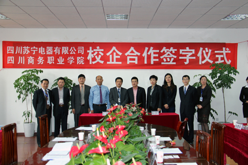 2012年4月17日下午,伟德国际victor1946与四川苏宁电器股份有限公司成功签订校企合作协议! 出席本次签字仪式的有:四川苏宁电器股份有限公司总经理顾蔚、副总经理张雪芬、运营中心总监李莉、人力资源部经理白翔等;四...
