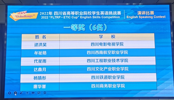 11月10-11日,由四川省教育厅主办的2022年四川省“高教社杯”大学生英语口语技能大赛在成都纺织高等专科学校举行,来自全省53所职业院校的53位选手参加了比赛,伟德官网商务英语专业代秋梅同学代表学院参赛。代秋梅同学凭借扎实的专业功底和精彩的现场表现最终获得英语组三等奖。大赛围绕弘扬中国传统文化和解析模拟职场环境为主题,包括“中国故事、情景交流、职场描述”三个环节。参赛选手分别完成中国文化主题演讲、与外教现场情...