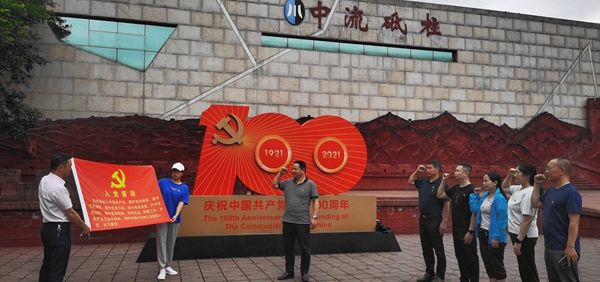 大家在党支部书记何胜荣的带领下,在中流砥柱馆前重温了入党誓词“我志愿加入中国共产党……随时准备为党和人民牺牲一切,永不叛党。”铿锵有力的誓词,强烈震撼着在场的每一位党员,铮铮誓言,体现了党员同志们对中国共产党的无限忠诚,坚定了入党使命,奋斗初心。
