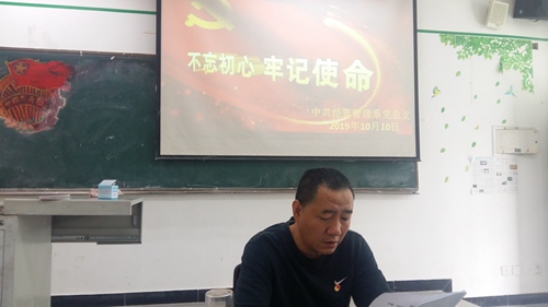 10月10日,经营管理系党总支组织全系党员开展“不忘初心、牢记使命”主题教育活动。会议由系党总支书记郑海波主持。
