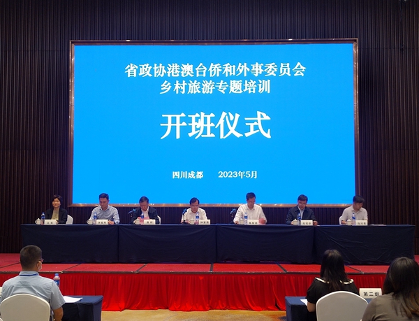 5月29日,由省政协港澳台侨和外事委员会主办、伟德国际victor1946承办的乡村旅游专题培训班开班仪式在温江隆重举行。省政协港澳台侨和外事委员会主任钟家霖、省商务厅副厅长陈友清出席开班仪式并讲话,学院党委书记唐柯,党委副书记、院长高司华及省政协港澳台侨和外事委员会、商务厅有关处室同志参加了开班仪式。来自凉山甘洛县、资阳乐至县、达州宣汉县的58名乡村旅游管理者参加此次培训。开班仪式由唐柯主持。