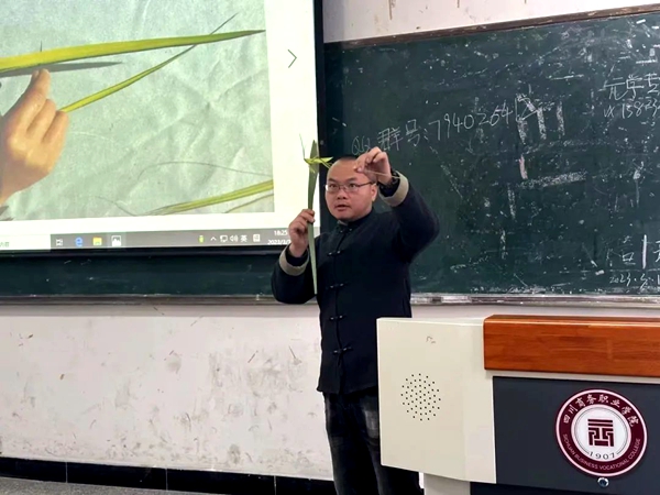 新繁棕编非遗技艺传承人罗志勇、刘国燕在和盛校区开展了非遗传承技艺棕编培训。罗志勇对我国非物质文化遗产——棕编作品进行了展示,并讲述了新繁棕编的产生、传承及发展过程;在教学中,他细致的讲解,耐心地为每一位同学示范,同学们认真学习,积极实践。