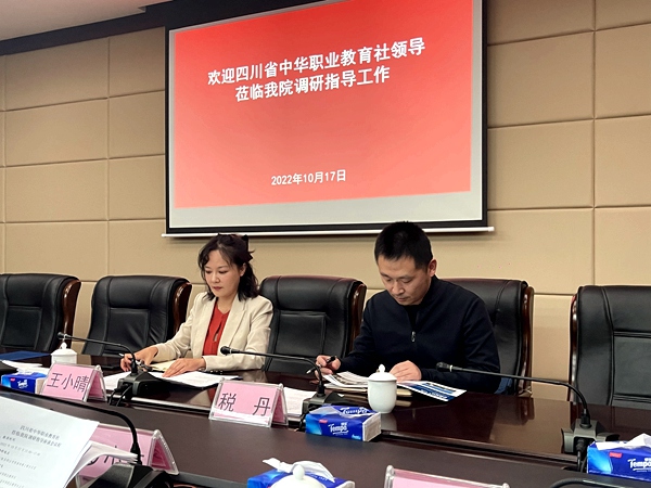 王小晴对学院高度重视并积极组织参加第二届四川省中华职业教育创新创业大赛表示充分肯定,并介绍了四川省中华职业教育社的基本情况。希望学院与四川省中华职业教育社加强联系,充分发挥办学特色与优势,共同助力区域经济社会发展,共同就职教周活动、送课进机关、送培进三州(甘孜州、阿坝州、凉山州)开展广泛合作。