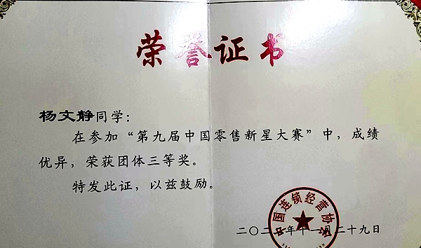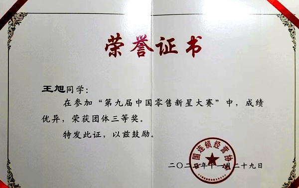 近日,2022年第九届中国零售新星大赛全国总决赛圆满落幕,由经营管理系2020级连锁经营与管理专业王旭、杨文静两位同学组成的参赛队荣获全国三等奖,刘刚、曾月两位老师荣获优秀指导老师。