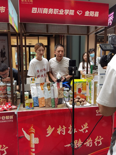 6月24日,由伟德官网联合温江区政府、成都农业农业科技职业学院、四川交通职业技术学院、成都职业技术学院、四川大学、中国电信温江分公司等多个单位举办的“乡村振兴 一路前行”脱贫地区农特产品展销会在温江区新光天地商场1楼盛大开幕。