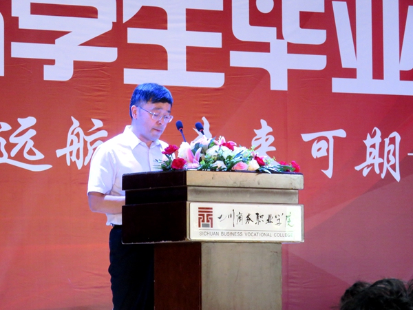 在雄壮的国歌声中,典礼正式拉开帷幕。唐柯、高司华分别为两个校区的毕业生致辞。唐柯希望毕业生们“志存高远,心怀梦想”,坚定理想信念,不忘初心,牢记使命。在今后的工作中,立足本职岗位,勤学习、勤思考、勤观察、勤实践、勤修身,发愤图强。高司华激励毕业生们坚定不移听党话、跟党走,矢志不渝与祖国同频共振,把个人理想融入中华民族伟大复兴的中国梦,以青春之我、奋斗之我,创建青春之国家、青春之民族。优秀教师代表刘丽娜、刘磊分别寄语毕业生,表达了全体老师对毕业生的祝福和期盼,愿同学们带着智慧与坚韧勇往直前;杰出校友邓友志和蔡卓良分享了个人成功经验。此外,优秀毕业生代表吴家瑶和王燕洁,回顾了愉快充实的三年校园生活,表达了对母校的感激与不舍,以及作为商院学子,努力追梦、不负青春的决心。