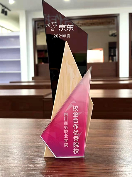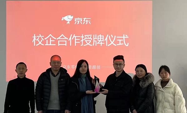12月29日上午,京东零售人力资源部经理刘蛟为伟德官网颁发了2021年度优秀校企合作院校奖杯。
