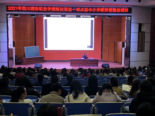 学院发挥职教优势、智力优势,助力邻水县脱贫攻坚和乡村振兴,绵绵用力、久久为功。学院2016年定点帮扶邻水县以来,开展了乡村振兴、电子商务、普通话、心理健康、驻村干部素质提升等多个培训项目。此次培训是继去年伟德官网举办邻水县乡村教师普通话专项能力培训后开展的第二次普通话培训,也是针对落实邻水县教育局在”2020年省直部门定点帮扶邻水县脱贫攻坚工作第二次联席会议”提出的帮扶需求。