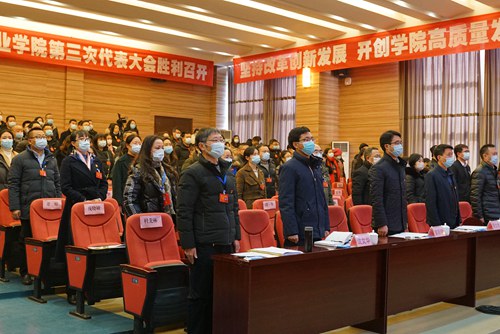 1月15日,中国共产党伟德国际victor1946第三次代表大会隆重举行。113名代表、5名来宾及12名列席人员出席大会。省教育厅一级巡视员胡卫锋,省商务厅一级巡视员刘祥超,省委教育工委、省教育厅干部人才处副处长姜跃明,省商务厅机关党委办公室主任、机关纪委副书记周文杰,省商务厅人事处副处长沈文华莅临指导工作。大会由学院党委副书记、院长高司华主持。