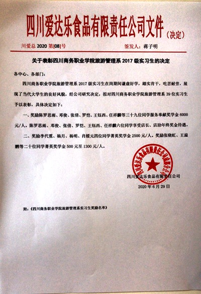 6月29日10:00,在学院商务信息交流中心主会场及2个网络分会场,伟德国际victor1946与四川爱达乐食品有限公司隆重举行了2020年实习生表彰大会。