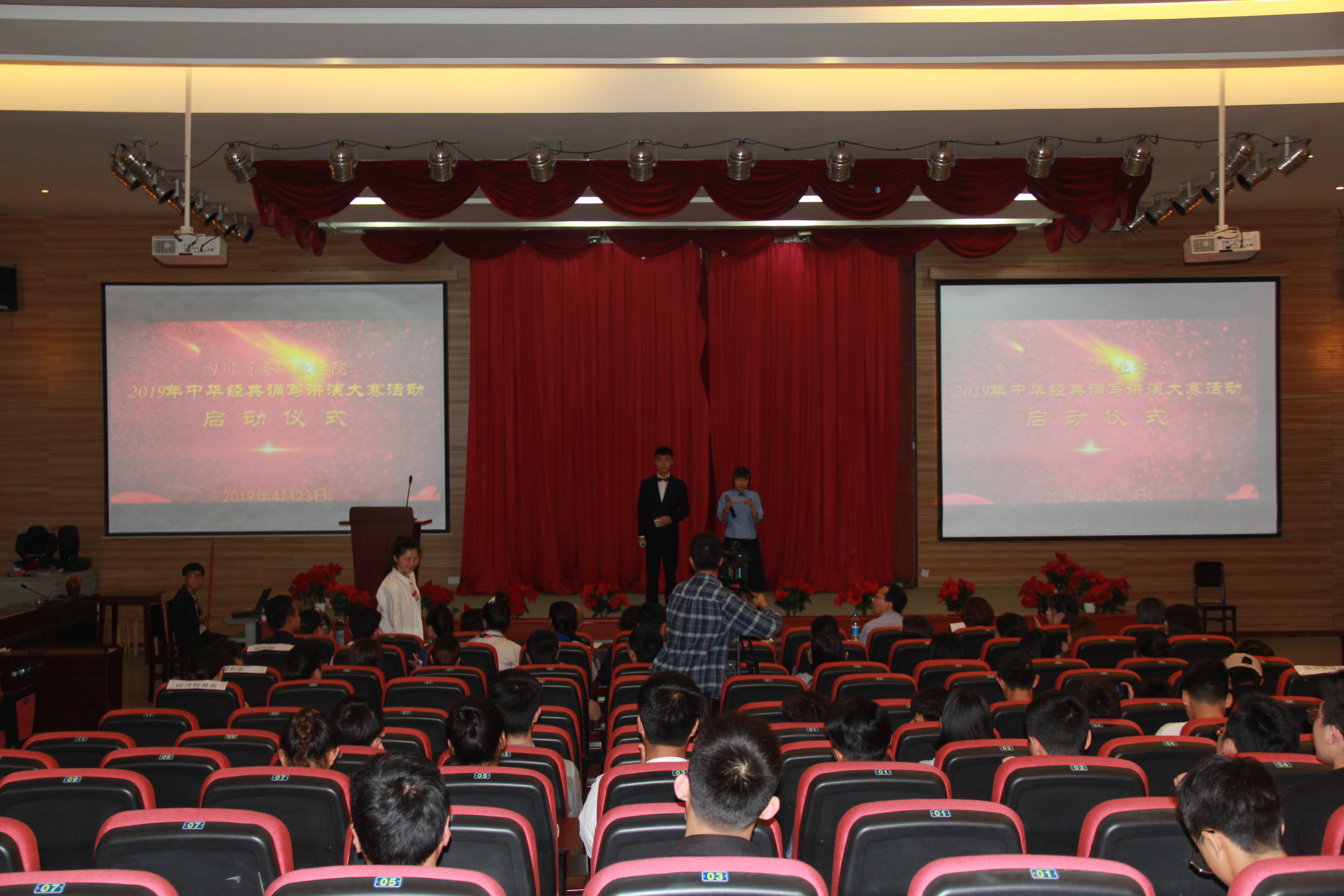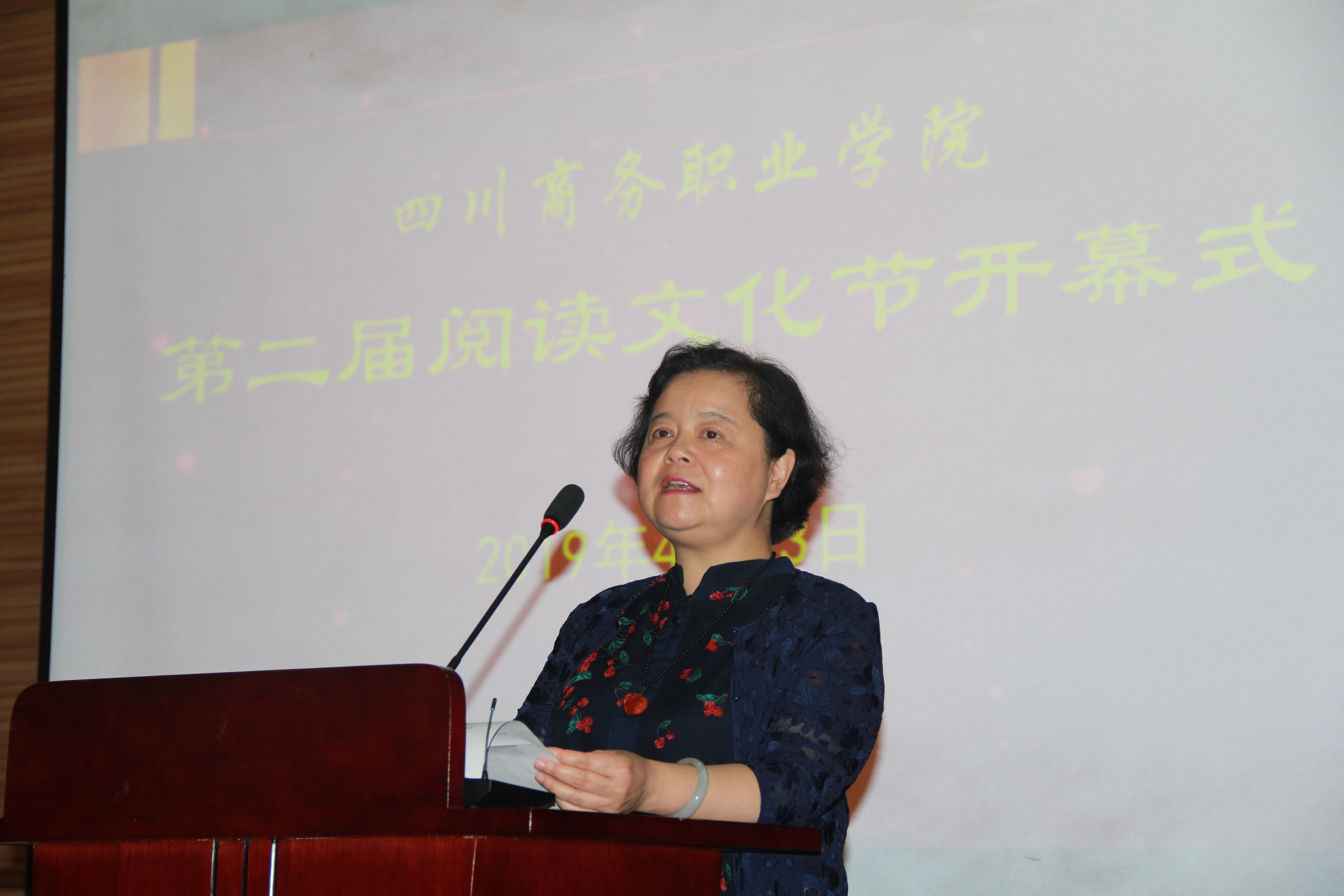 作为2019年中华经典读写演讲系列活动一部分,同时根据四川省图工委《关于举办第二届“悦读新时代·四川高校阅读文化节”的通知》(省图委[2019]4号)精神,会场还进行学院第二届阅读文化节开幕式。图书馆副馆长吴萍在讲话中强调,将开展一系列阅读推广活动,营造书香校园,传承商道文化,使培养良好的阅读习惯蔚然成风。