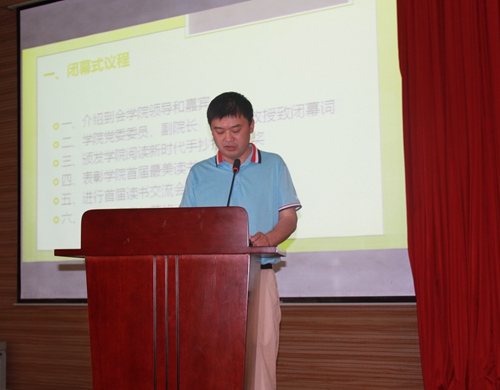 65下午,学院首届阅读文化节闭幕式及阅读交流会在商务信息交流中心隆重举行。学院党委委员、副院长向宏志,党委委员、党政办主任池秋平,教务处、学生处、实践教学中心、人文社科部、思政教学部、国合中心、图书馆等部门负责人或派员参加闭幕式。