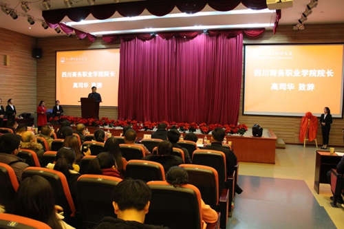 出席仪式的有省商务厅二级巡视员呙相林,温江区教育局党组成员、机关党委书记周萍,温江区人社局党组成员、就业局局长朱航,眉山市三人行创业服务有限公司董事长唐磊、总经理冉淋源,四川省人社厅创业指导专家王释德以及伟德官网院长高司华,副院长许丹雅、向宏志。