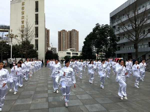 比赛在下午13:00准时进行,运动场上,运动员们精神饱满,队形整齐,动作准确,刚柔相济,眼随手走,整齐划一,充分展现了太极拳的风格特点。博得观众的阵阵喝彩。比赛队员的拼搏精神也感染了在场的每位同学,啦啦队的呐喊声、加油声将比赛的气氛一次次推上了高潮。冠、亚、季的争夺更是扣人心弦、激动人心,每个队伍都在为集体的荣誉而战。经过紧张、激烈的角逐,最终15级会计系技压群雄、勇得冠军,成功卫冕。14级经济贸易系,15级旅游系屈居亚军。15级信息系,15级设计艺术系,15级经济管理系三队分获季军。
