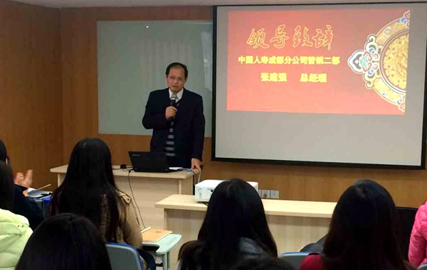 12月1日,伟德官网会计系2013级金融管理与实务专业与中国人寿成都分公司校企合作项目首届订单班开训仪式在中国人寿成都市分公司成功举行。中国人寿成都分公司总经理张建强、会计系党总支副书记周发强等相关教师及39名参训学生出席了开训仪式。