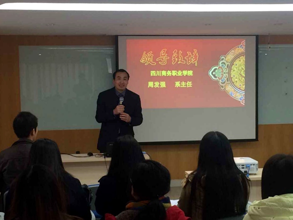 周发强副书记在开训仪式上代表会计系讲话,希望中国人寿成都分公司的各位领导和老师多教导和约束实训学生,同时多给校方提出宝贵的意见和建议,并给予专业老师深入了解和学习保险领域实务操作的机会。要求同学们在工作期间严格遵守学院的相关管理规定,提高安全防范意识,圆满完成实习任务;严格遵守中国人寿成都分公司相关规章制度,服从公司管理,在实践中运用和检验自己的专业知识,以优秀员工的标准严格要求自己。