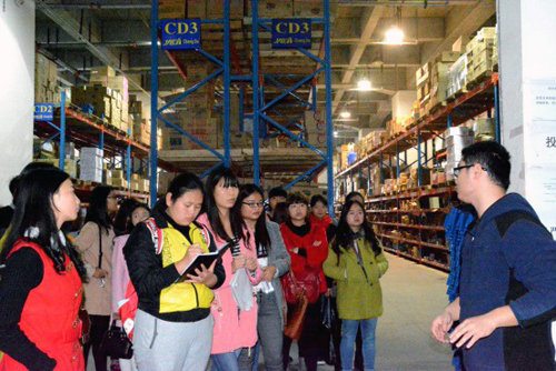 第三个目的地是全家物流仓库配送中心。同学们参观了仓库、配送中心,并观摩了物流配送的整个流程。