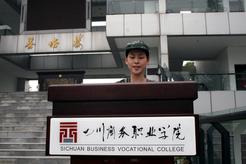 庄严的国歌声中,军训动员大会隆重开始。学院党委书记舒维霖代表学院向各位新同学表示热烈的欢迎,他希望2014级的新生秉承伟德官网“学无涯,商有道”的商道文化精神,勇于接受任何挑战,坚决服从教官的安排,发扬革命前辈吃苦耐劳的精神。会上四川省学生军事训练基地龙泉驿区人民武装部分基地陈道洪同志、唐运同志代表参训基地教官对军训做了具体要求,军训教官和参训学员代表也做了精彩发言。在嘹亮的军歌声中,学院院长高力平为军训团授旗,代表了军训团的成立,军训正式开始。
