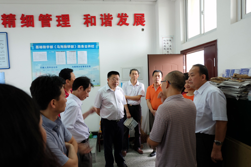 刚一到校,谢开华厅长一行就在学院党委书记舒维霖、院长高力平等领导班子成员的陪同下兴致勃勃地对学院进行考察,马不停蹄地到学工处、团委、基础部、教务处、国际部、经济管理系和财务与资产管理处等系部看望慰问教职工,亲切询问教职工的工作、生活情况,就学院的学生管理、校园文化建设、师资职称与职业发展、教务管理、中外合作办学、校企合作、专业建设、内涵建设等工作进行了交流探讨,并提出了许多宝贵的意见和建议。