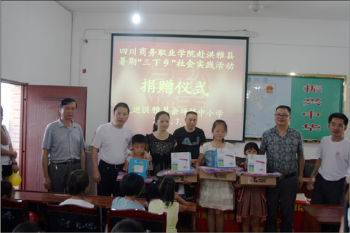7月10日,伟德官网服务团一行来到余坪镇中小学对余坪镇的留守儿童进行了慰问与关心。在爱心捐赠仪式上,伟德官网纪委官培生书记代表学院领导发表了热情洋溢的讲话,并为当地留守儿童之家的小朋友们捐赠了价值5000余元的学习、生活用品。捐赠仪式后,服务团的同学们和余坪镇的小朋友们进行了一场趣味盎然的互动活动,同学们教小朋友们唱歌、做游戏等,设计艺术系的同学们还用他们的专业知识为同学们带去了简单的美术入门学习和互动,给小朋友带了了快乐,送去了浓浓的关爱和温暖。