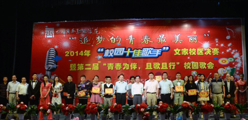 为进一步凝聚“青春正能量”,响应“中国梦”主题教育活动,努力营造积极向上、百花齐放、师生和谐的校园氛围,5月21日晚在文家校区厚德楼学生活动厅成功举办了“追梦的青春最美”大学生校园歌会暨“十佳歌手”学院半决赛。学院党委书记舒维霖、副院长向宏志、纪委书记官培生、副院长张军、各系部负责人、辅导员、专业教师代表、评委老师和近800名同学参与了本场半决赛。