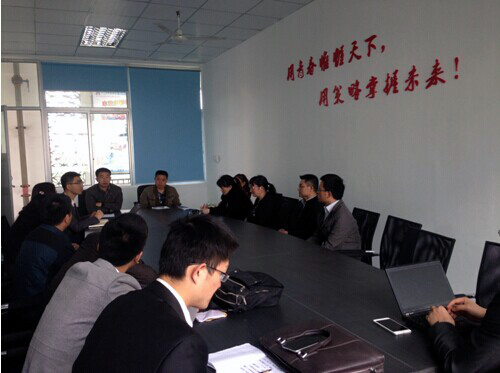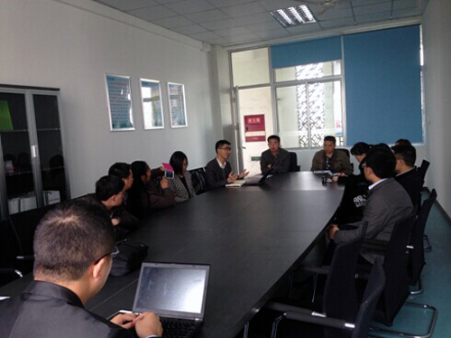 然后领导和老师们在新建成的谈判室中进行了座谈,张莉老师对市场营销专业的实践教学方面的思路、具体做法和实践效果与各位来访嘉宾做了分享。校企合作企业用友新道川渝公司的侯总和瞿刚经理对如何进行校企合作、支持学校将企业搬进校园做了介绍。最后张莉老师给来访的嘉宾留了联系方式,希望这种校与校、专业与专业的交流能够持续进行下去,推动我们专业持续改革和进步。
