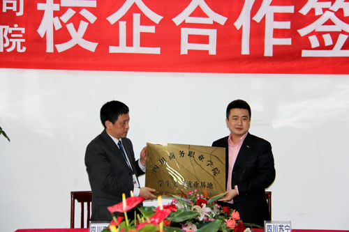 高院长首先代表学院对苏宁电器顾总一行表示了热烈欢迎,并热情介绍他对苏宁电器品牌的忠爱、学院的发展历程、学院在人才培养工作中所取得成就及今后的发展思路;接着苏宁电器顾总诚恳地表示了与学院合作的诚意,介绍了苏宁电器作为中国3C家电连锁零售企业领先者,中国连锁百强之首、国内大型上市优秀企业创立21年来的发展理念以及目前的企业规模、基本业务及当前与院校合作的基本情况;来自09物流专业的徐霞同学代表在苏宁实习的同学发言,介绍她个人在苏宁的学习成长经历及个人的收获,并期待学院能够与苏宁更深层次地合作;最后,高院长与顾总分别代表四川商院与苏宁电器现场签订校企合作办学协议,并相互授予:苏宁电器成为伟德官网学生“实习就业基地”,伟德官网成为苏宁电器“员工培训基地”。