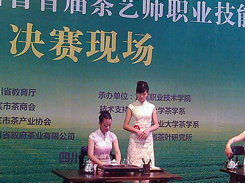 5月11日,由四川省教育厅主办,宜宾职业技术职业学院承办的“叙府龙芽杯”首届四川省高职高专茶艺师技能大赛在四川省叙府茶业有限公司金秋湖科技园区举行。伟德官网旅游管理系黄进老师指导的四位12级酒店管理专业同学代表学院参加了本次大赛,取得了团体优秀奖和个人三等奖的良好成绩。