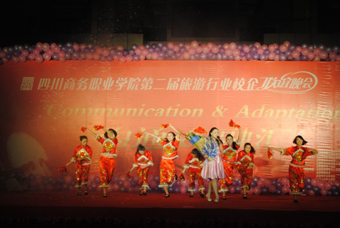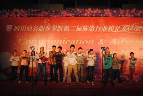 18:30点,由学院科研处主办,旅游系与成都各家酒店一同策划演出的“校企联欢晚会”将我们的校企联谊活动推向了高潮,各酒店选送的优质节目,让学生们耳目一新,同时,学生们的精彩演出和晚会中表现出的优秀素质,也得到了各企业嘉宾的一致好评。