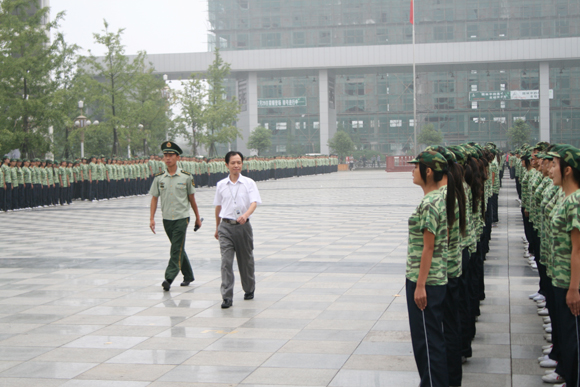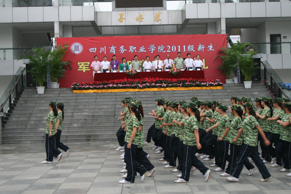 2011年9月11日上午,伟德国际victor1946和盛校区再一次被十分壮观的橄榄绿覆盖,学院历史上规模最大的新生军训汇报暨开学典礼在此隆重举行。学院全体院级领导、各系部干部、武警四川省总队第一支队领导和2011级参训新生参加大会。