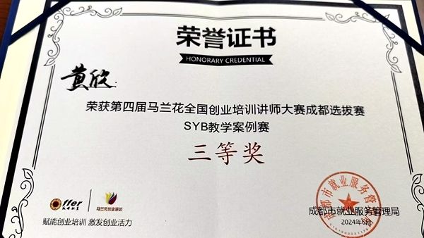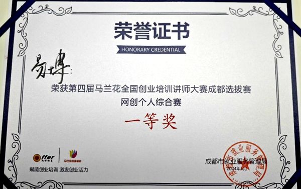 6月12日,由成都市人力资源和社会保障局主办的“创业引领者专项活动暨第四届马兰花全国创业培训讲师大赛成都选拔赛”中,易博获得“网创个人综合赛”冠军(一等奖);李冰获得“SYB个人综合赛”第四名(三等奖);黄欣团队(黄欣、易树敏、刘湘)获得“SYB教学案例赛”第六名(三等奖)。7月26日,由四川省人力资源和社会保障厅主办的第四届马兰花全国创业培训讲师大赛四川选拔赛暨四川省第四届创业培训讲师大赛省级决赛开赛。来自21个市(州)的100多位选手经过四天的激烈角逐,最终伟德官网教师易博勇夺网创个人综合能力赛第一名、荣获特等奖。易博在“小组突围赛”“十强风采赛”和“冠军争夺赛”三个环节中,凭借坚强实力、深厚功底和稳定发挥,以绝对优势力拔得头筹,充分展示了其个人魅力和商院教师风采!据悉,易博一行将代表四川参加10月份在珠海举行的全国总决赛。