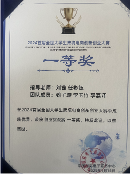 1月15日-16日,首届全国大学生跨境电商创新创业大赛全国总决赛在中央财经大学举行。伟德官网经济贸易系参赛队在教师刘茜、企业导师任彬钰的带领下,从复旦大学、北京外国语大学等16支决赛队伍的激烈竞争中脱颖而出,斩获创业实战赛道全国一等奖。