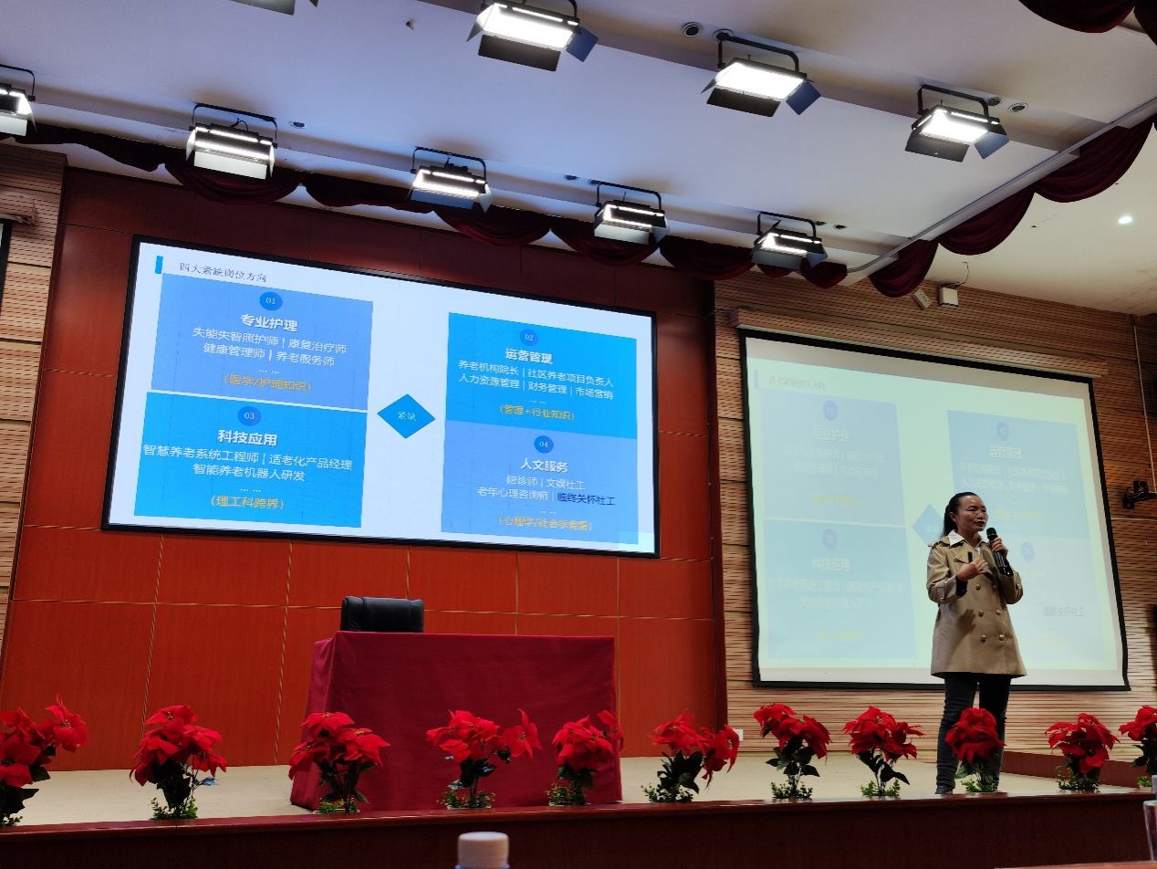 本次活动以“春蕾绽放助力四川省女大学生职场成长计划”为主题,设置“行业指导+就业指导+就业咨询”等板块。本次宣讲的就业指导专家李红从自身丰富的行业经验,就“一老一小”的发展机会及潜力、成长路径等方面进行了详细解读;