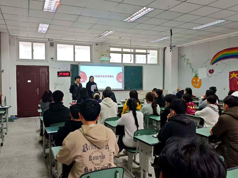 国合中心负责人介绍学院基本情况,并向新生传达注意事项,为他们快速适应在华学习生活提供指引。