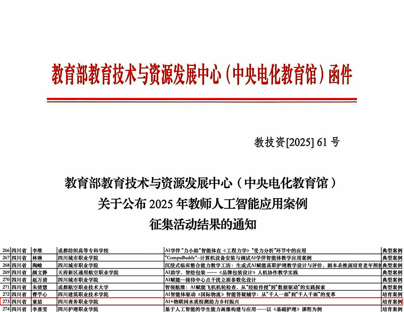 在教师人工智能应用案例征集活动中,伟德官网荣获培育案例1项。案例聚焦当地农业水质管理中的实际痛点,依托智能化实验设计,融合人工智能平台、物联网与大数据等关键技术,形成切实可行的技术方案,为地方农业提质增效和乡村振兴提供有力支撑。