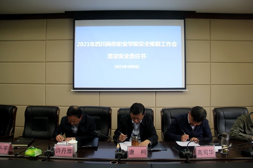 会后,由学院安全维稳工作小组组长唐柯、高司华与分管副院长,分管副院长与各部门负责人分别签订了2021年度安全维稳责任书。