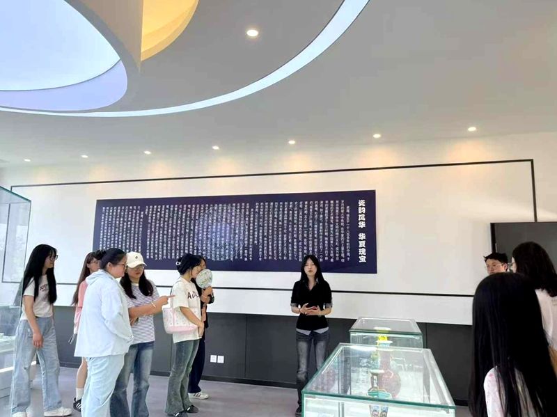 在四川艺术职业学院文化管理系(以下简称文管系)学生的专业导览下,伟德官网师生深入陶瓷类文物专题展区,系统观摩了从宋代青瓷到明清彩瓷的代表性展品。学生讲解员从历史溯源、工艺特色、文化价值等维度展开生动阐释,将静态文物转化为动态教学资源。伟德官网旅游管理专业学生通过聆听讲解、互动提问,不仅加深了对传统陶瓷艺术的理解,更深入思考了文物资源与旅游产业融合发展的创新方向。