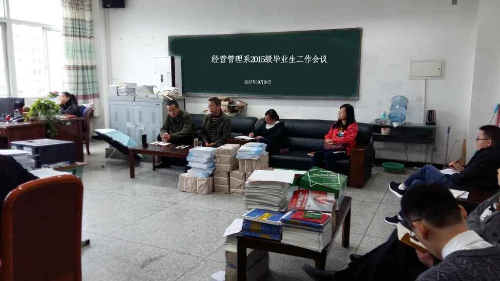 2017年10月24日上午9点30分,经营管理系于第一教学楼306室召开毕业生工作会议。出席会议的有经管系主任梁栋,系党总支书记郑海波,系副主任王琦,系党政办主任朱永泉,各教研室负责人,全体辅导员和行政人员。 会上,...