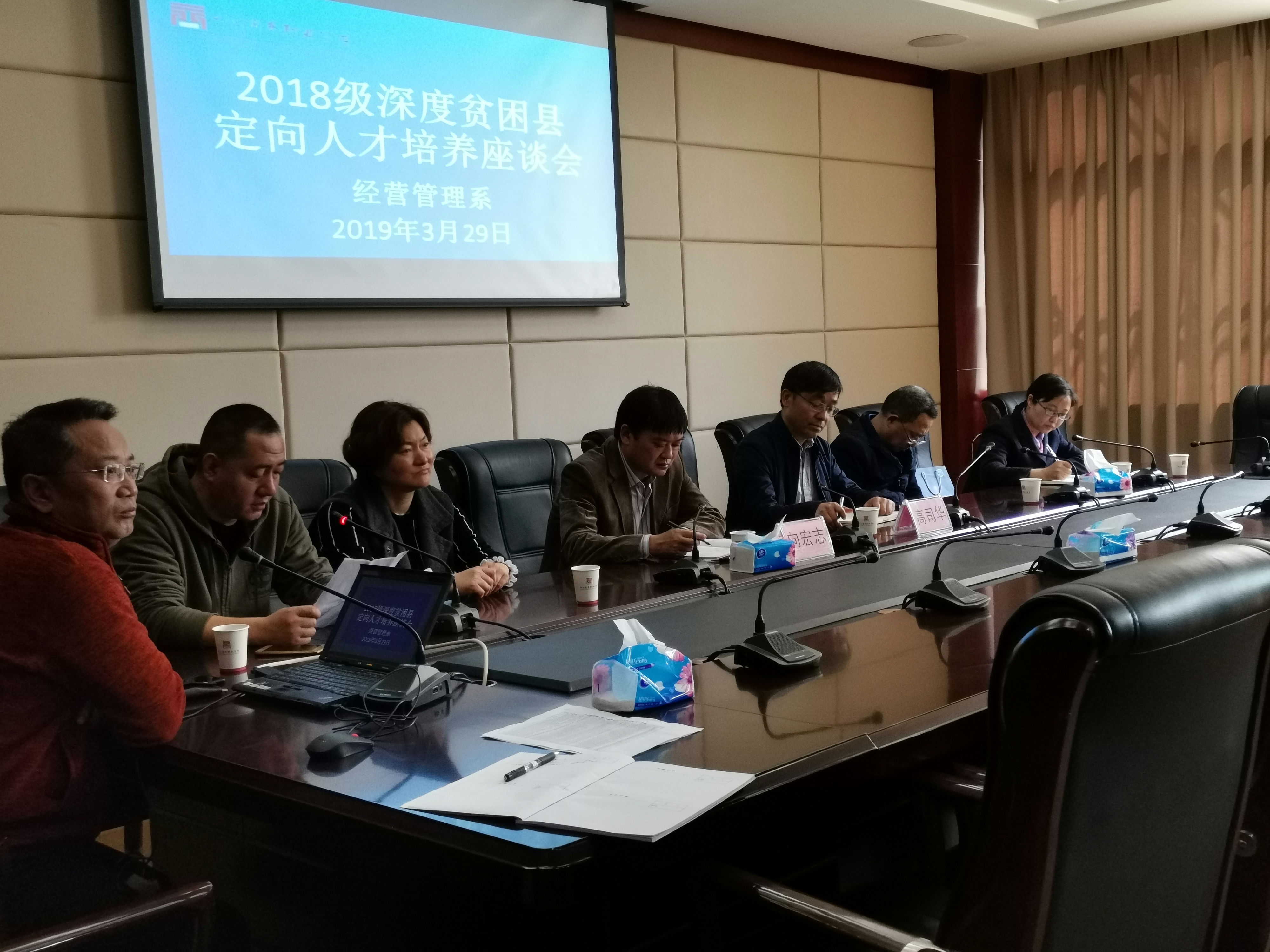 2019年3月29日星期五上午10:30,经营管理系2018级深度贫困县定向人才培养工作座谈会在善培楼二教会议室隆重召开。出席本的会议有学院高司华院长、向宏志副院长、招就处弋福林处长、学生处王军处长、经管系梁栋主任、...