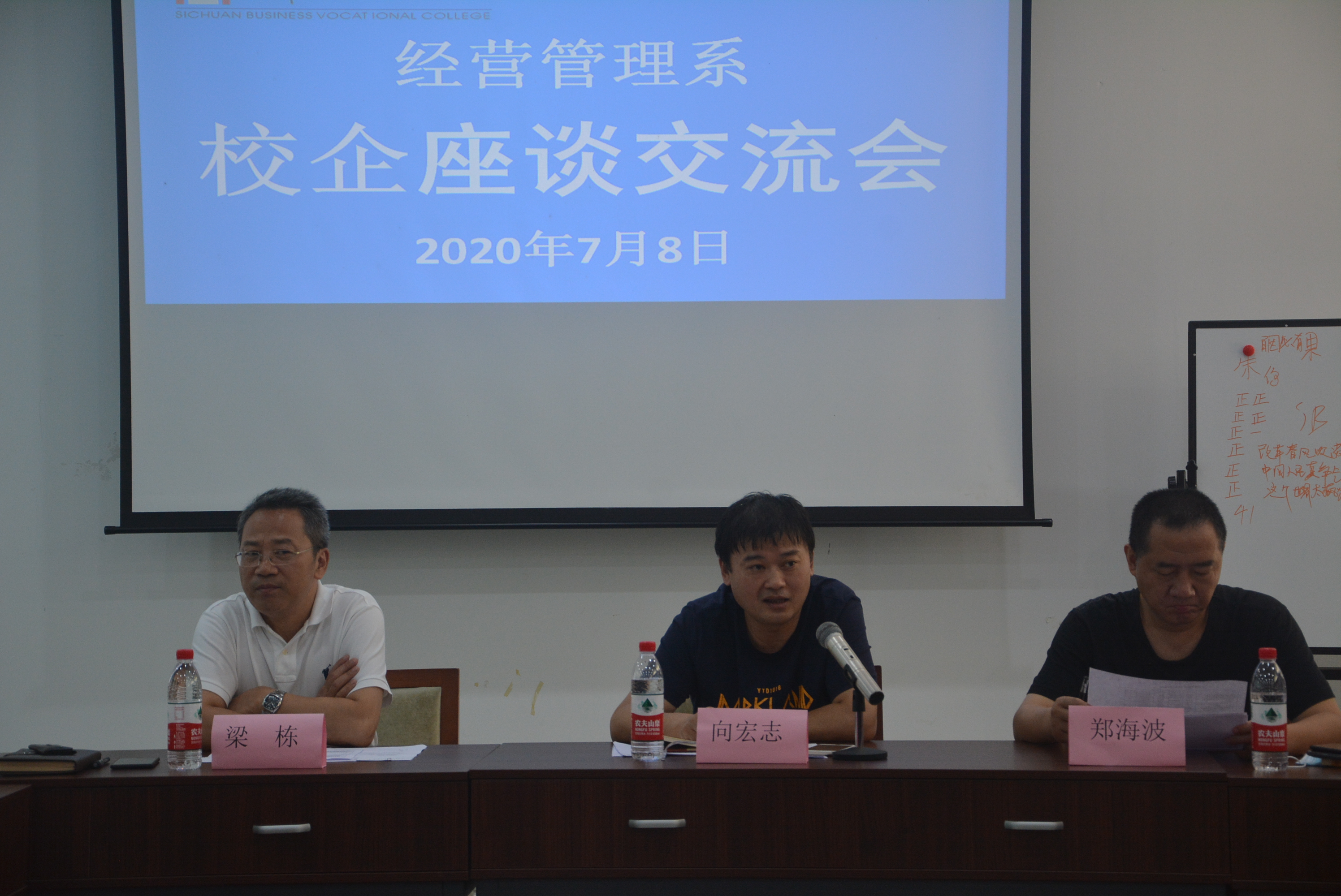 2020年7月8日10:00,经管系于第五教学楼白酒陈列室隆重举行了2018级校企跟岗实习座谈交流大会。出席本次会议的有京东、苏宁、永辉、沃尔玛、柒一拾壹、德邦物流、京东物流、百果园等17家企业的代表;学院副院长向宏志...