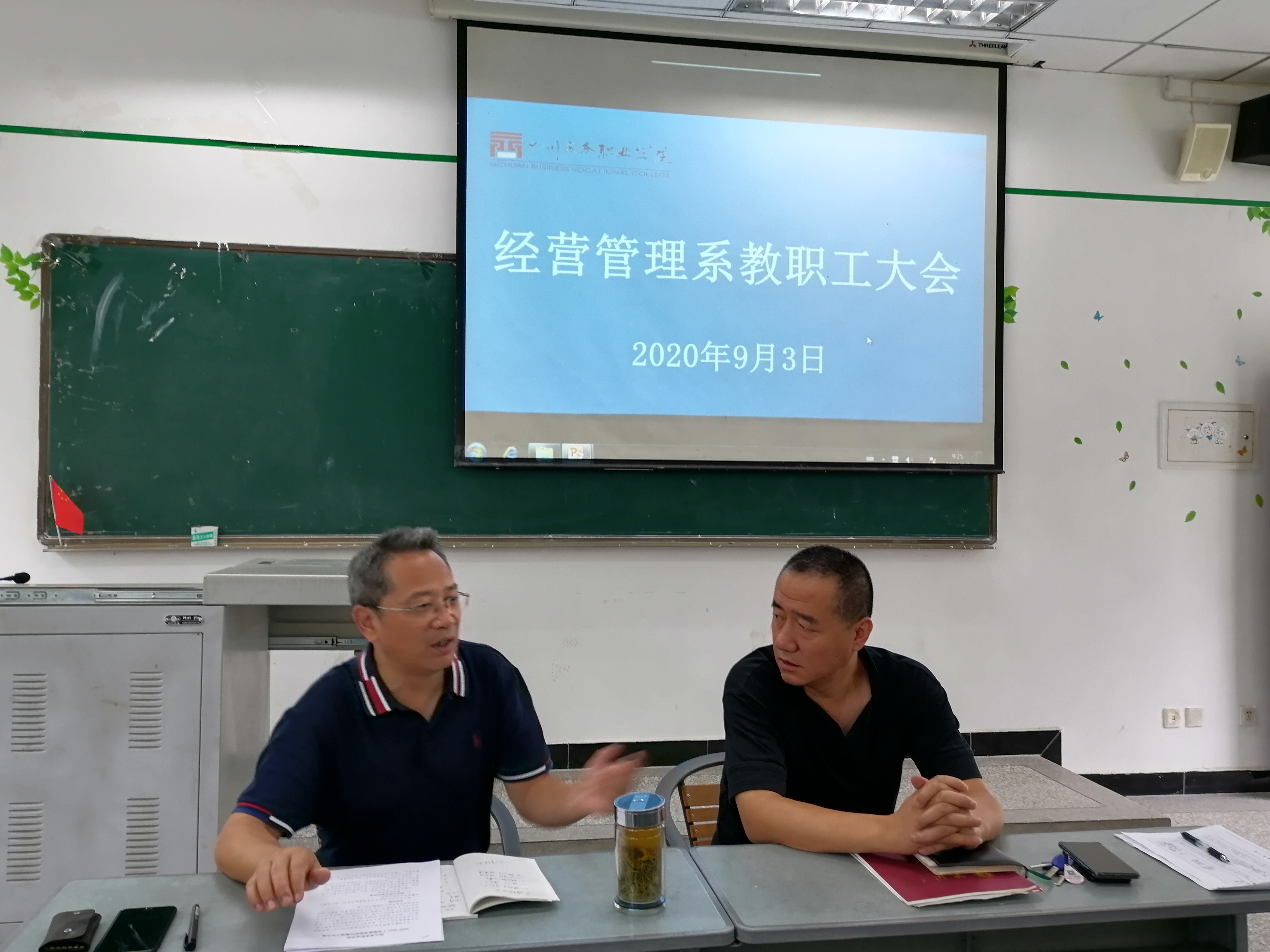 2020年9月3日上午9:30,经营管理系全体教职工于第一教学楼202室召开全系教职工会议。对本学期的重点工作进行了部署。会议由系主任梁栋主持。 会上传达了8月29日学院中层干部会议精神,重点强调了做好开学的相关准备,...