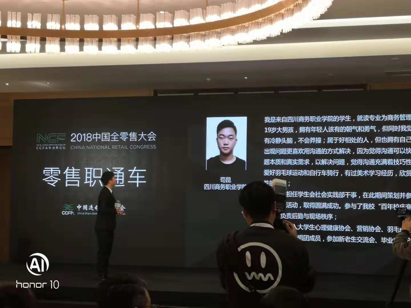 其中苟昆同学在135名决赛选手中脱颖而出,获得“零售直通车”名额(共20名),在自我展示后,当场获得多家企业高管发出的offer。