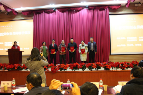 伟德国际victor1946副院长许丹雅、向宏志向乔志军、王释德、冉淋源、方秀莲颁发创业导师聘书。