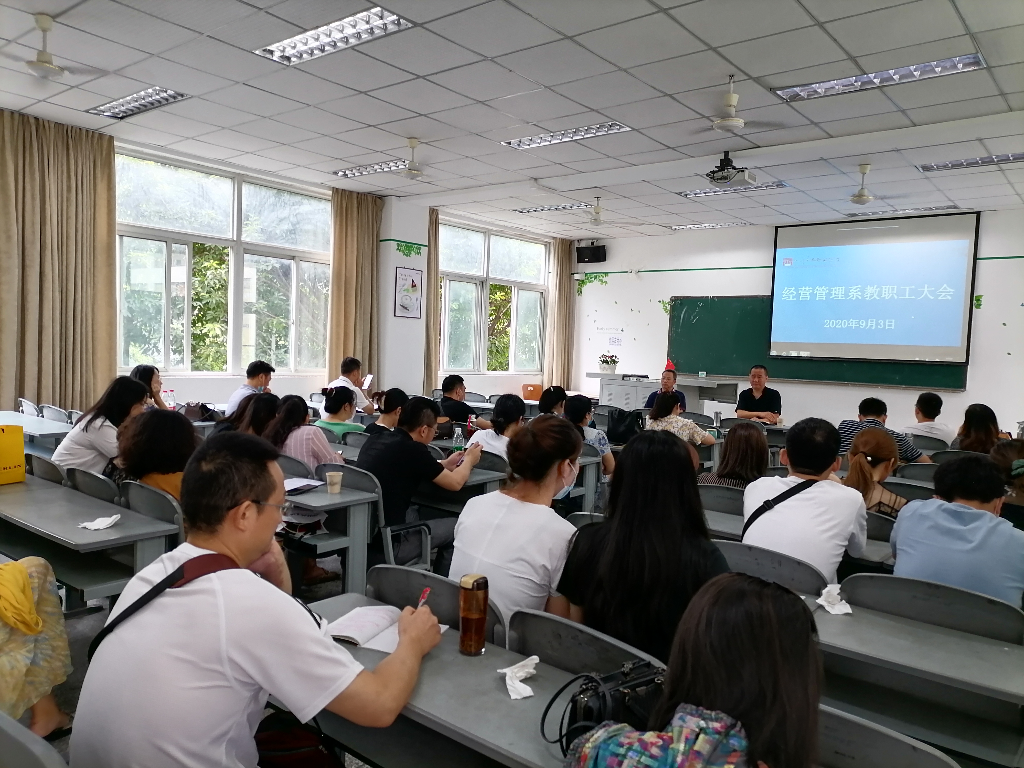 2020年9月3日上午9:30,经营管理系全体教职工于第一教学楼202室召开全系教职工会议。对本学期的重点工作进行了部署。会议由系主任梁栋主持。