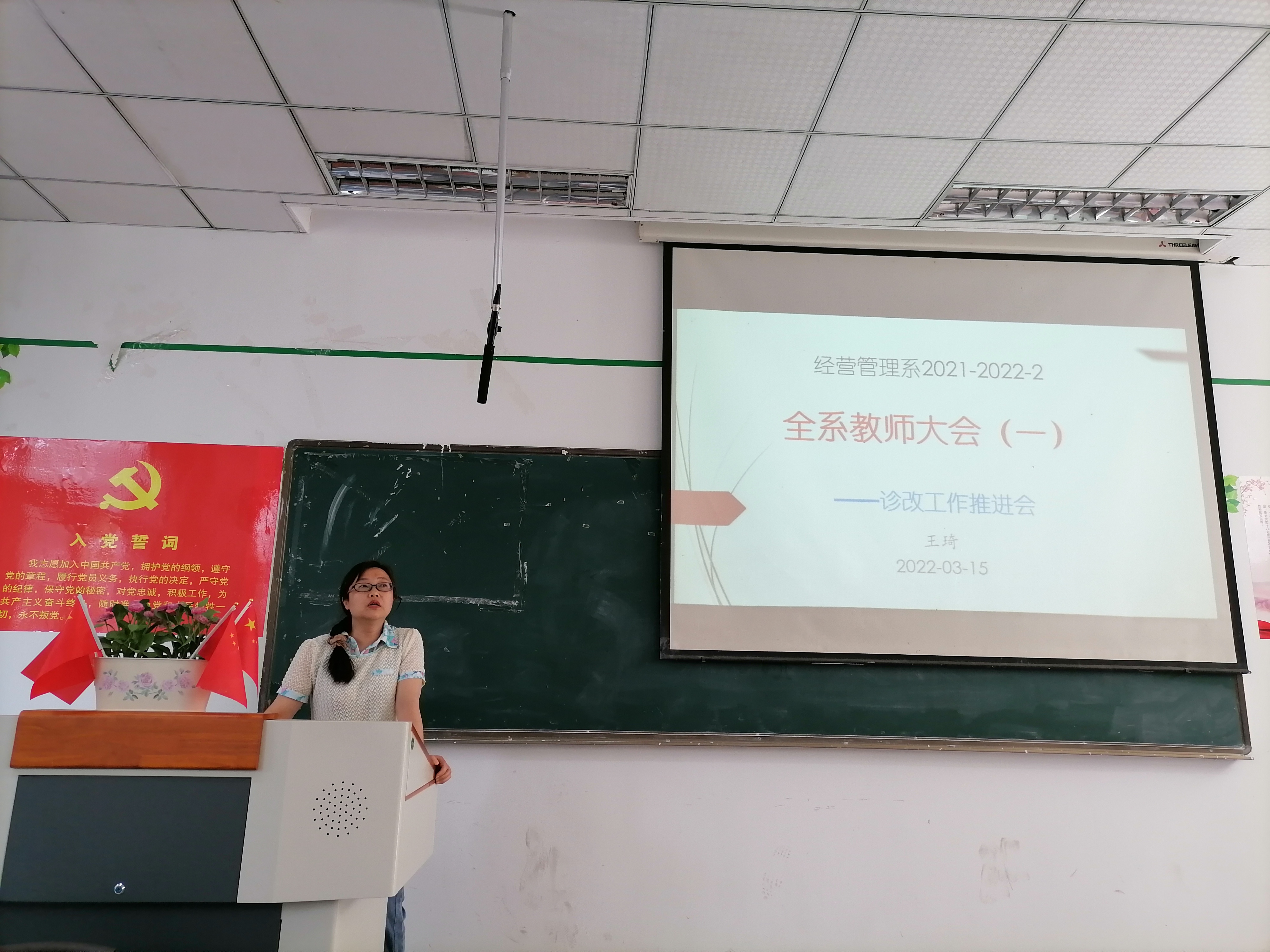 3月15号下午2:00,经营管理系全系教师在1教202教室召开了内部质量诊改复核工作会议。